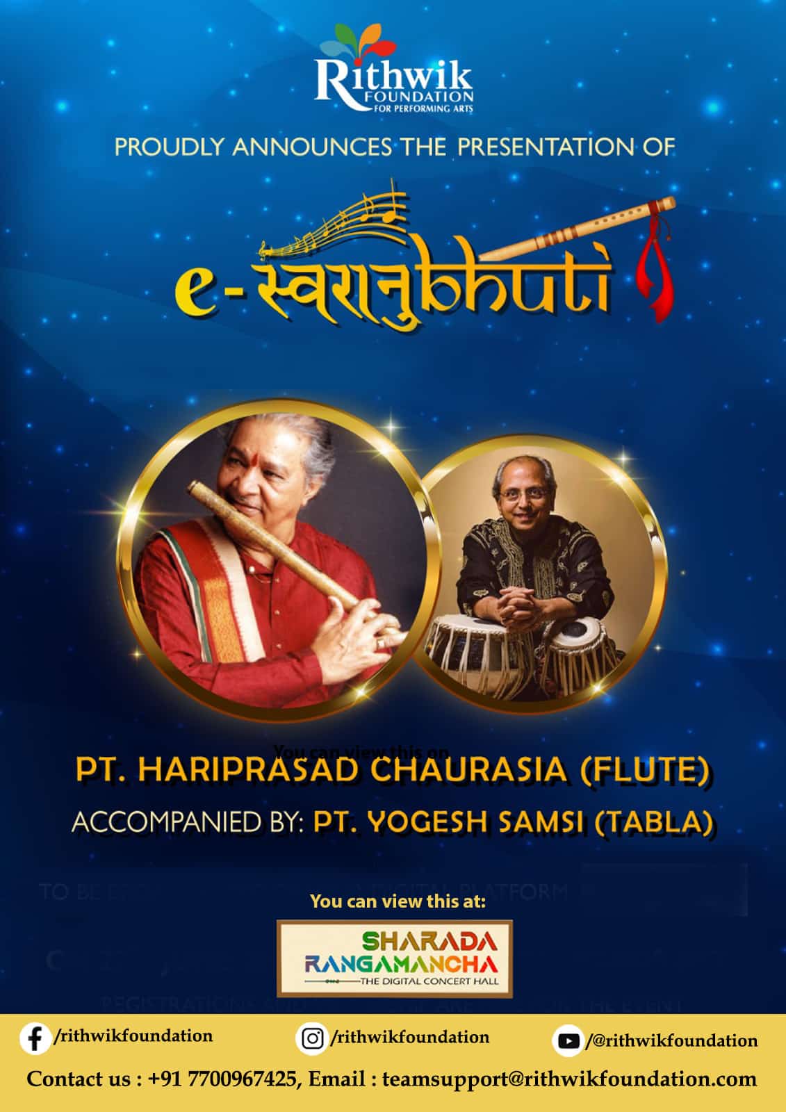 The online flute performance by Hariprasad chaurasia ji will include the roopak and teen taal, but there are also a few surprising compositions coming your way!
